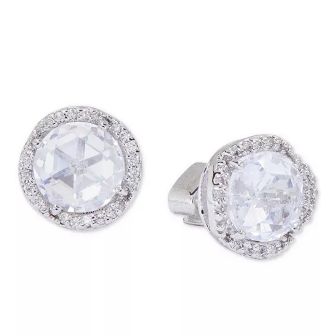/ Pavé Large Crystal Round Stud Earrings – Silver